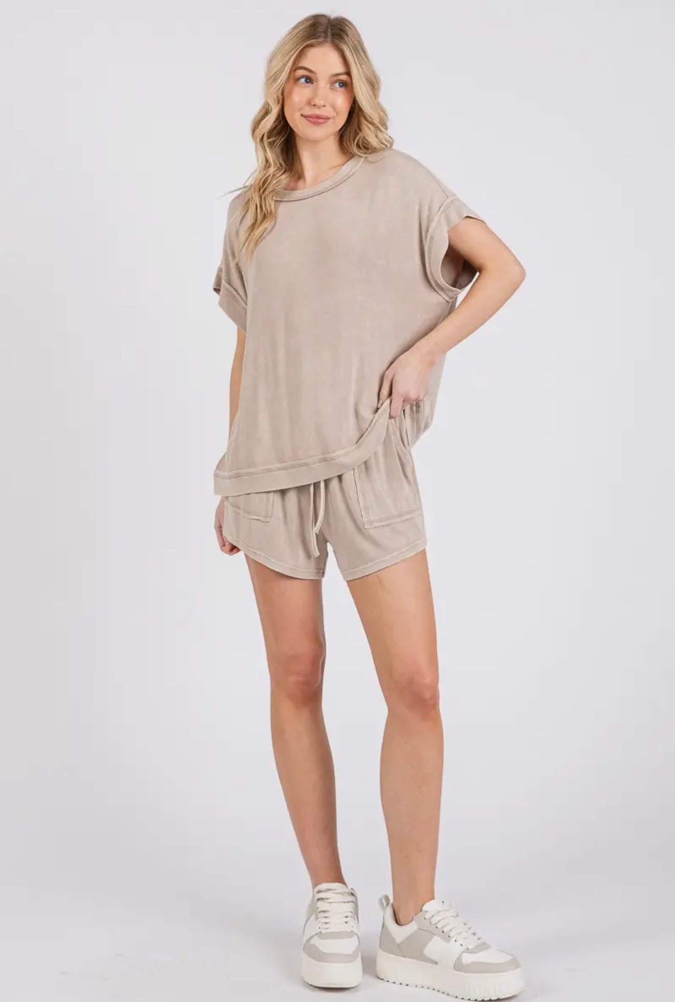 Made from a soft ribbed knit fabric, this set is breathable, lightweight, and perfect for slow mornings, running errands, or relaxing in comfort.